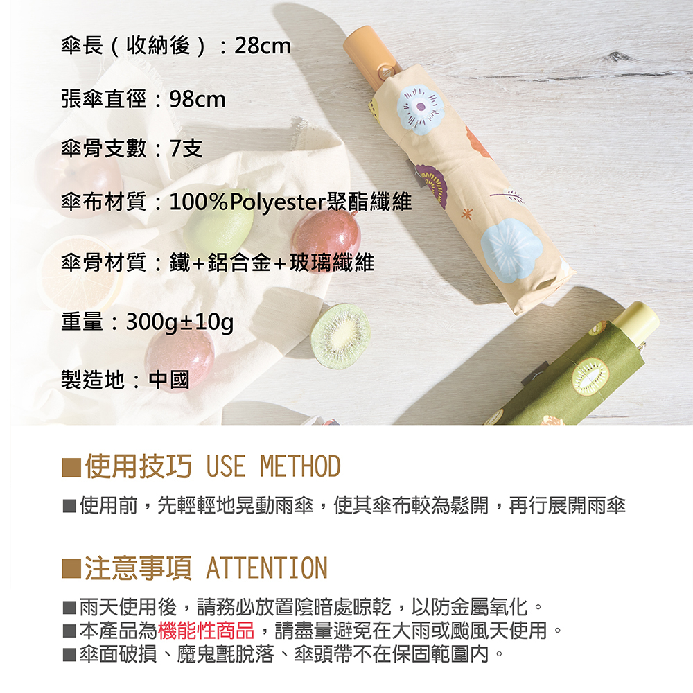• 傘布材質:100%Polyester