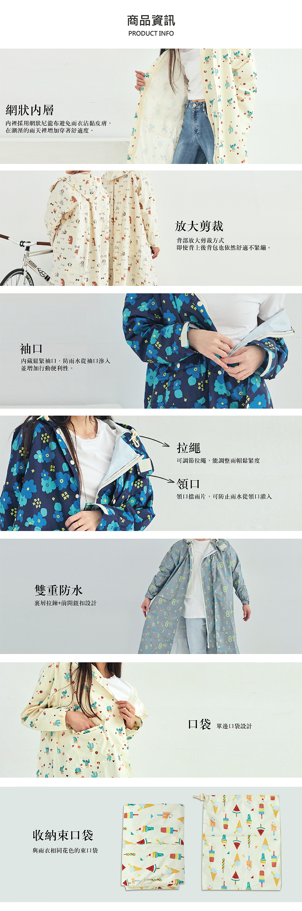 ★袖口內藏鬆緊帶,有效防止雨水滲入