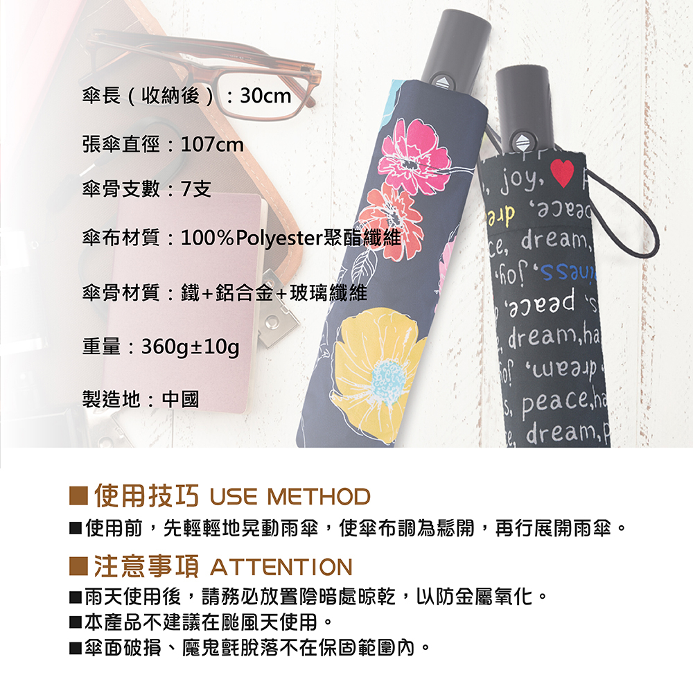 3.傘面破損、魔鬼氈傘、傘頭帶不在保固範圍。
