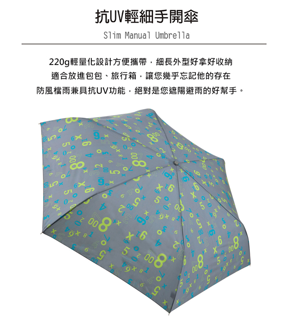 RAINSTORY數字方程式抗UV手開輕細口紅傘
