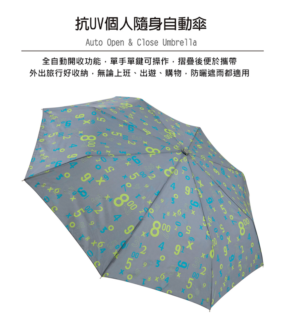 RAINSTORY數字方程式抗UV個人自動傘