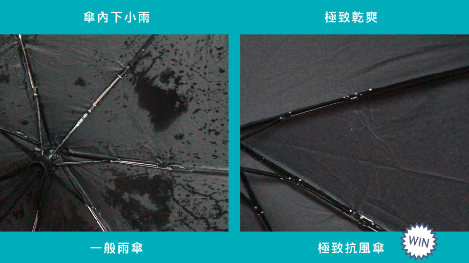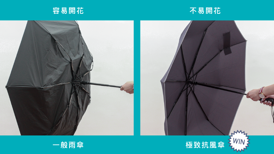 ↑ 一般雨傘:骨架單薄,容易開花 ↑