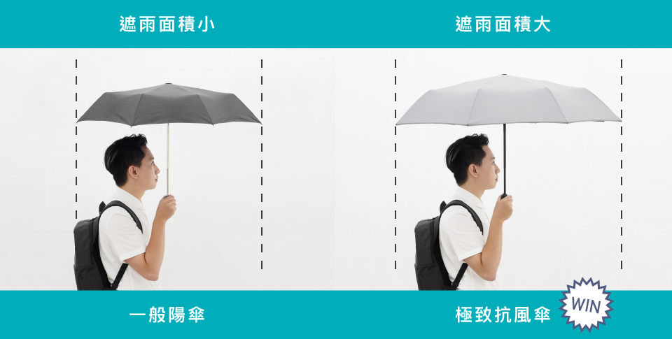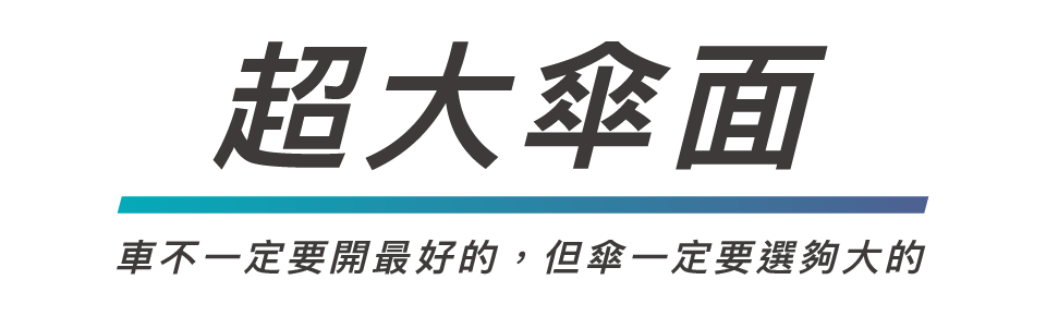 大傘面足夠兩個人撐傘,讓雨滴不會弄濕衣服與包包。極致抗風傘採用60cm的傘骨,擁有抗風傘裡最大的遮蔽面積,給你貼心的防護。